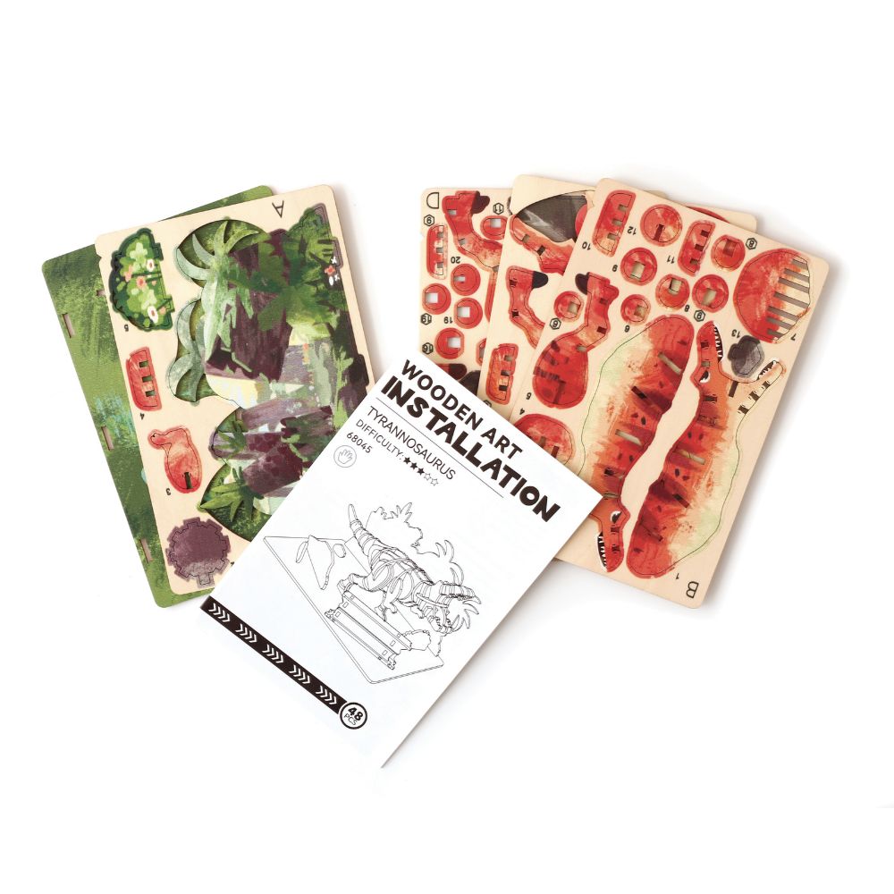 Graine Creative's Wooden 3D Model – Tyrannosaurus is a DIY wooden construction kit that lets you build a 3-dimensional model of a terrifying Tyrannosaurus Rex.
